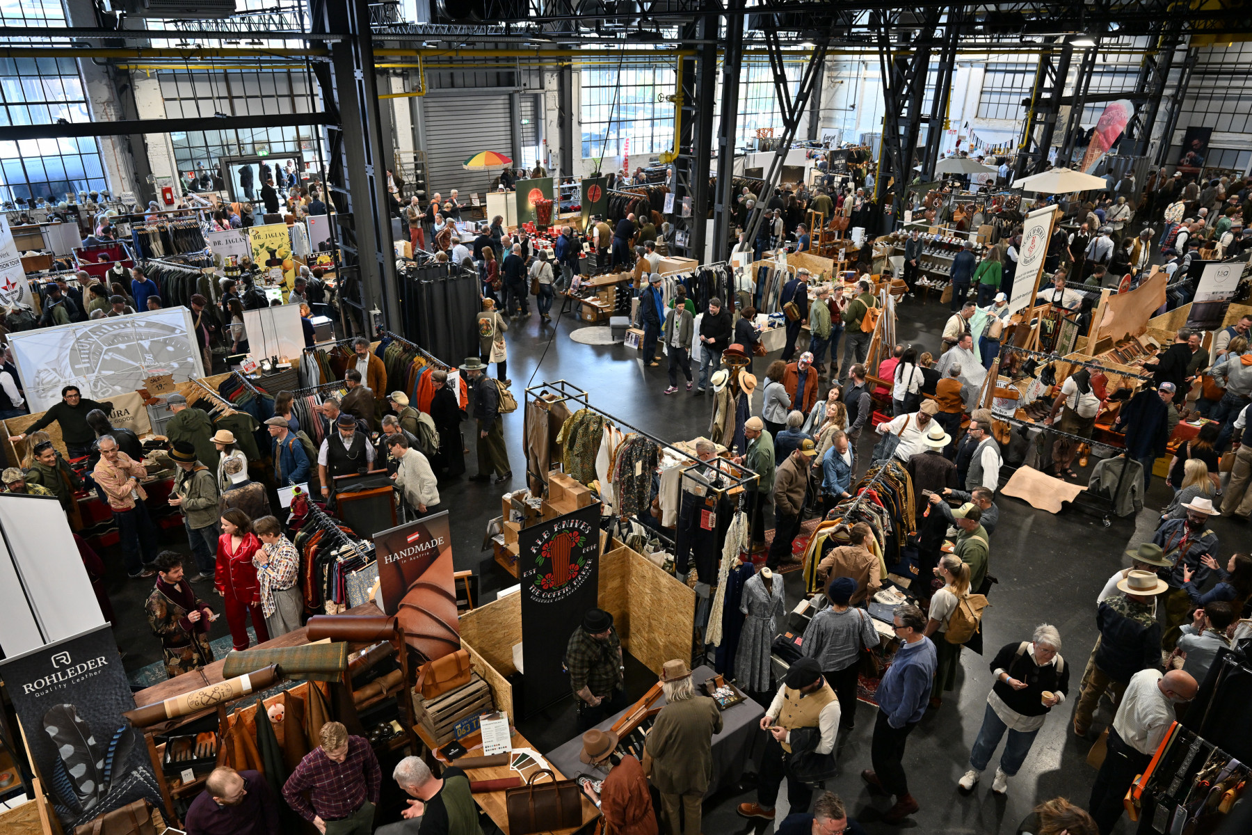 Wollten Sie schon immer mal eine langlebige Selvedge-Jeans besitzen, einen handgefertigten Ledergürtel oder die perfekte Lederjacke? Hier können Sie fündig werden. Die italienischen Denim Labels Hens Teeth, Captain Santors und Scarti Lab zeigen uns wieviel Herzblut und Sorgfalt in Jeans und Workwear stecken kann. Thedi Leathers reisen extra aus Griechenland an und aus Frankreich kommen A Piece of Chic und Fleurs de Bagne mit ihren einzigartigen Interpretationen alter Arbeiterkleidung. Modische Highlights aus Deutschland sind unter anderem Workwear Department 1920, Farm ums Herz, Das Werkhaus und Blaumann. Es gibt zeitlose Bekleidungs-Klassiker und auch Freunde der 20er und 30er Jahre finden hier das richtige Outfit. Man findet hier Dinge, die nicht jeder hat, und die in der Produktionsweise ethisch vertretbar sind, keine prekären Arbeitsbedingungen, keine Tierquälerei – stattdessen ausschließlich aus hochwertigen Rohstoffen gefertigt und extrem lange halt- und tragbar. Darüber hinaus kann man sich an den Ständen zur Herstellung und zum jeweiligen Handwerk informieren.