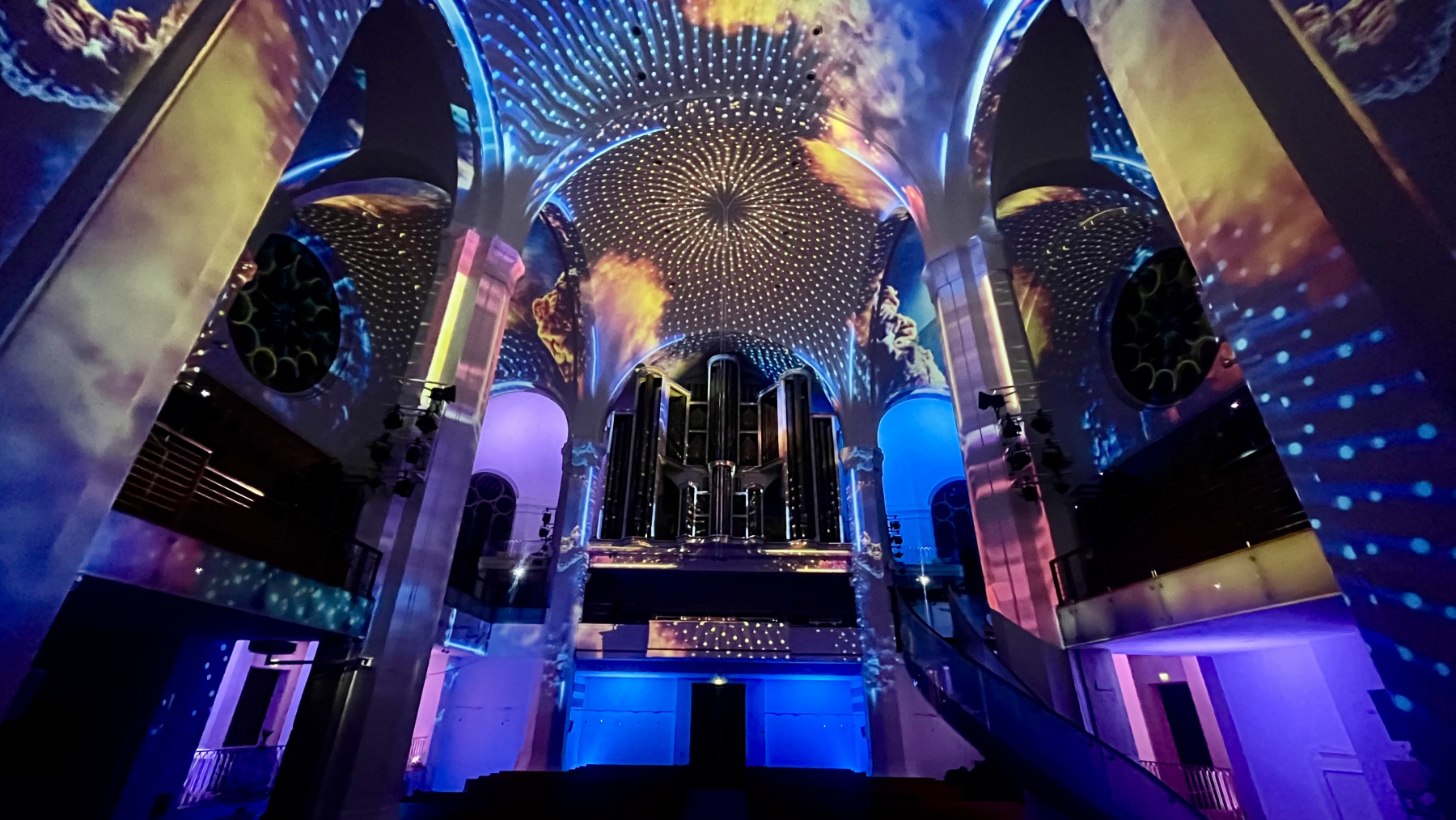 Die Johanneskirche bietet mit ihrer markanten Architektur die ideale Grundlage für diese raumgreifende Lichtkomposition. Durch präzise eingesetzte Mapping-Technologie entsteht der Eindruck, der Raum selbst beginne, Geschichten zu erzählen. Die Bausubstanz wird nicht nur illuminiert, sondern als Teil des künstlerischen Ausdrucks aktiviert – ein Dialog zwischen Raum, Geschichte und Gegenwart.