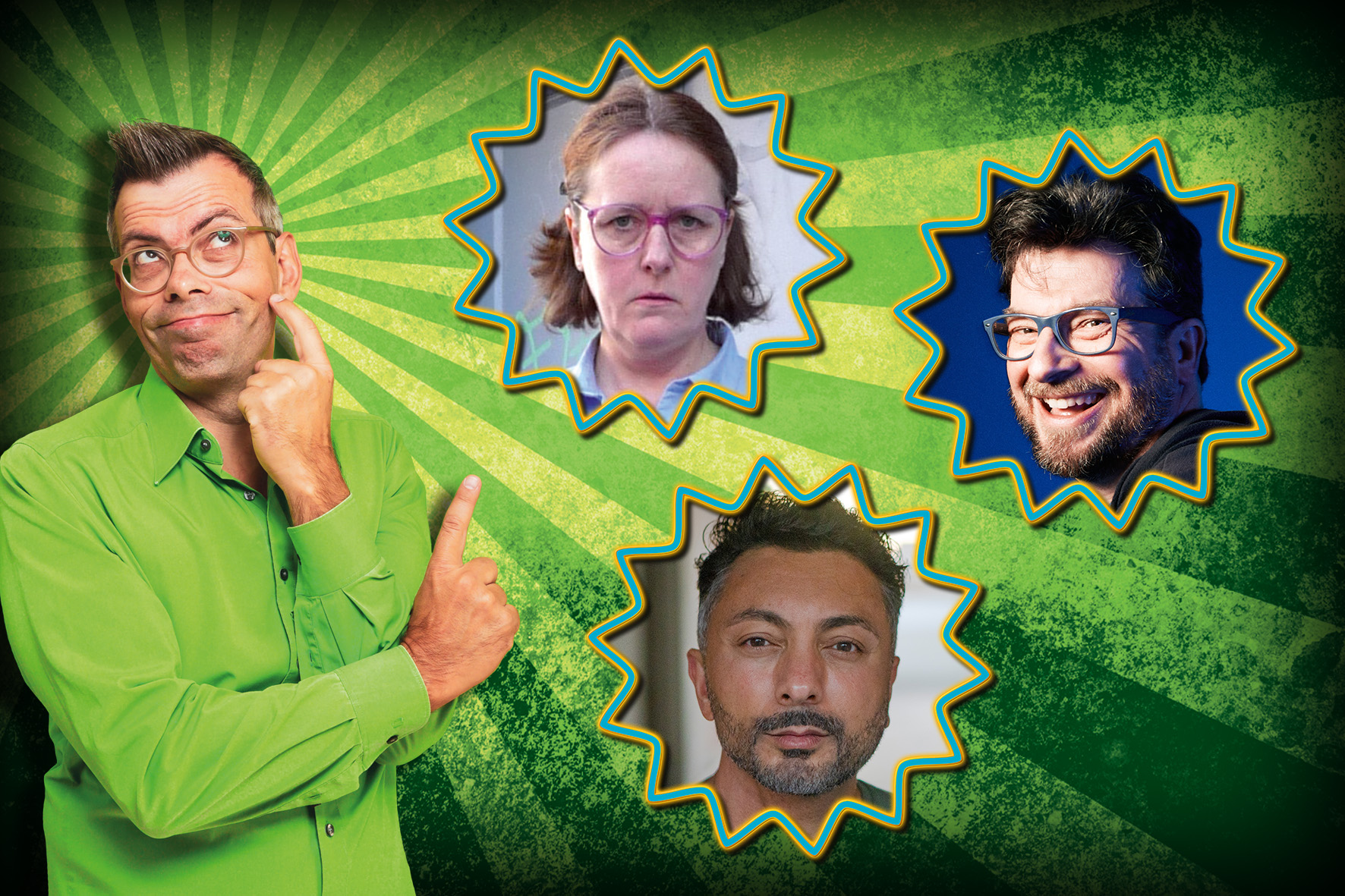 Dritter im Bunde ist Özgür Cebe, der diese Fangfrage stellt: Wenn der Islam NICHT zu Deutschland gehört, Ostwestfalen aber schon, wohin gehört dann ein in Bielefeld geborener Rheinländer mit türkischen Wurzeln?! Ein Spagat, den der preisgekrönte Kabarettist jeden Tag praktizieren muss. Das tut weh. Da hilft nur eins: sich locker machen. Mit Selbstironie und pointierter Beobachtung entwaffnet er alle Scharfmacher durch pure Gelassenheit.