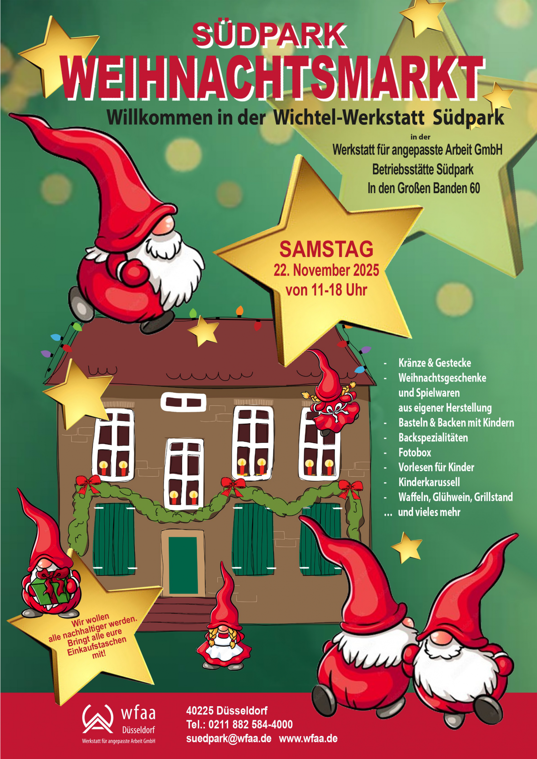Die WfaA lädt herzlich dazu ein, die bsondere Atmosphäre des Weihnachtsmarktes zu erleben und sich in der Wichtel-Werkstatt inspirieren zu lassen.